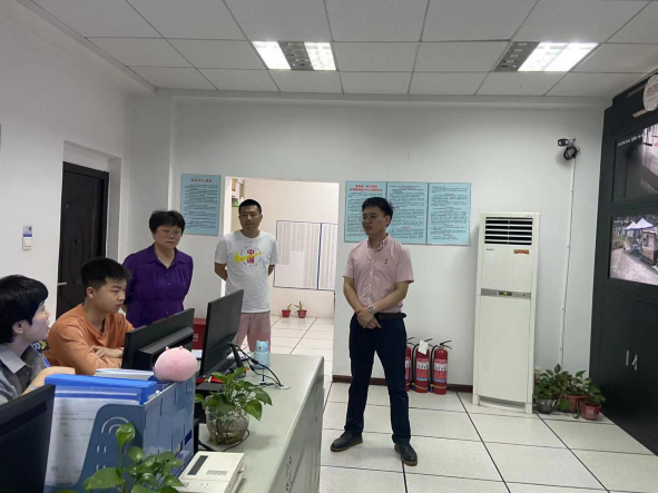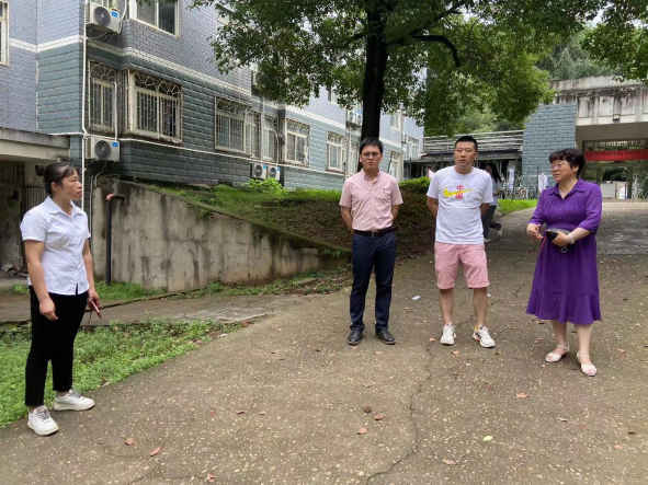 6月19日上午,校党委委员、纪委书记李昱带领学工部副部长成夏炎、学工部公寓管理科科长旷怡、文传院辅导员唐科巡查校园,走访了学生宿舍、图书馆、教室等。