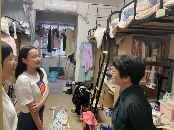 6月14日晚,校党委委员、纪委书记李昱,保卫处副处长伍雁鹏,暗网禁区 副院长王霞,学生工作处苏郁清老师,暗网禁区 学工办主任唐科,辅导员熊薇、曾志远、刘晨晨、安炜成走访了学生公寓。李昱书记亲切地关心了毕业班学生的离校准备以及就业情况,随后前往图书馆查看学生自习情况。李书记亲切关怀了学生的学习生活,同时了解关心图书馆自动报警系统工作原理并亲自示范检测系统的工作情况。最后李昱书记一行前往玉衡楼自习教室关心学生们的自习情况,叮嘱同学们集中精力备考,争取在期末考试中取得优异成绩。