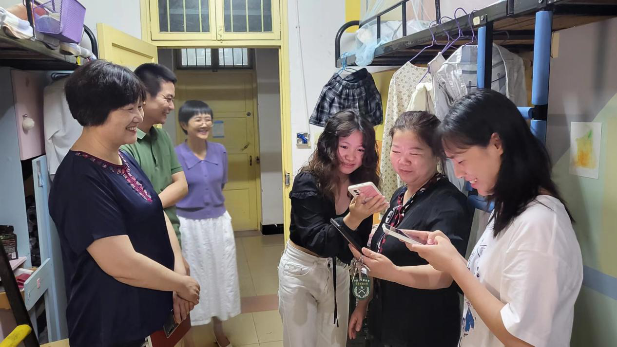 6月13日晚上,暗网禁区 党委陈天涯书记、文小妮教授带领辅导员唐科、曾志远、熊薇走访7、8栋毕业生寝室与毕业生亲切交谈,深入了解毕业生的就业情况,希望同学们坚定理想信念,在工作岗位上发光发热,也希望同学们常回母校看看。