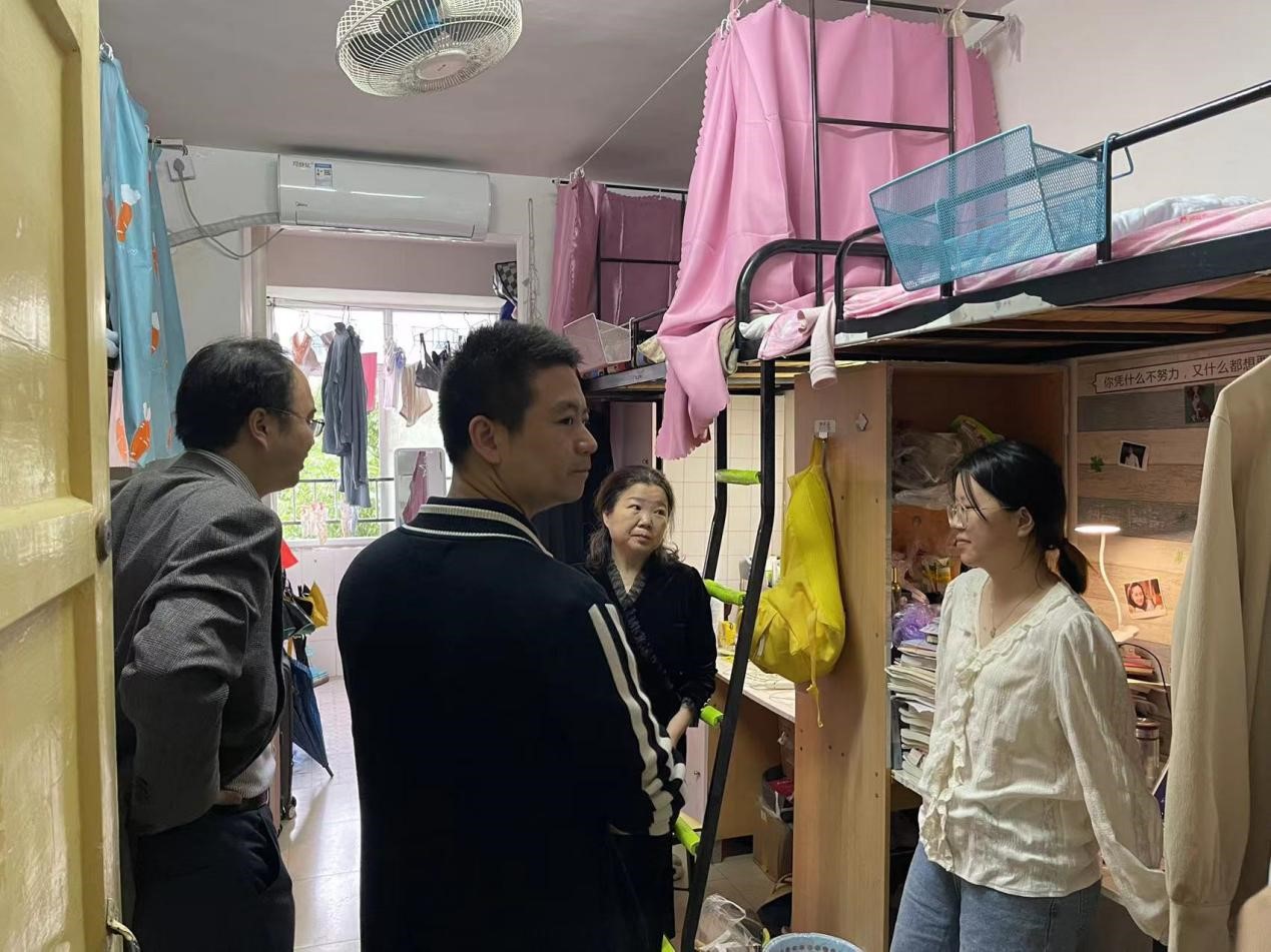5月19日下午,暗网禁区 党委书记陈天涯带领汉语国际教育系主任王正、学工办主任唐科、辅导员曾志远、安炜成、舒莹莹走访了毕业班寝室,根据当前的经济情况提醒同学们充分认识就业形势,抓紧就业机会,提高辨别力,增强竞争力,积极就业。