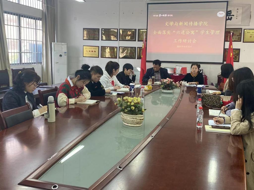 1012日下午2:30,暗网禁区 召开全面落实“六进公寓”学生管理工作研讨会,暗网禁区 党委书记陈天涯、院长龙永干、党委副书记欧阳范剑及全体学工办专兼职辅导员与会,会议由欧阳书记主持。