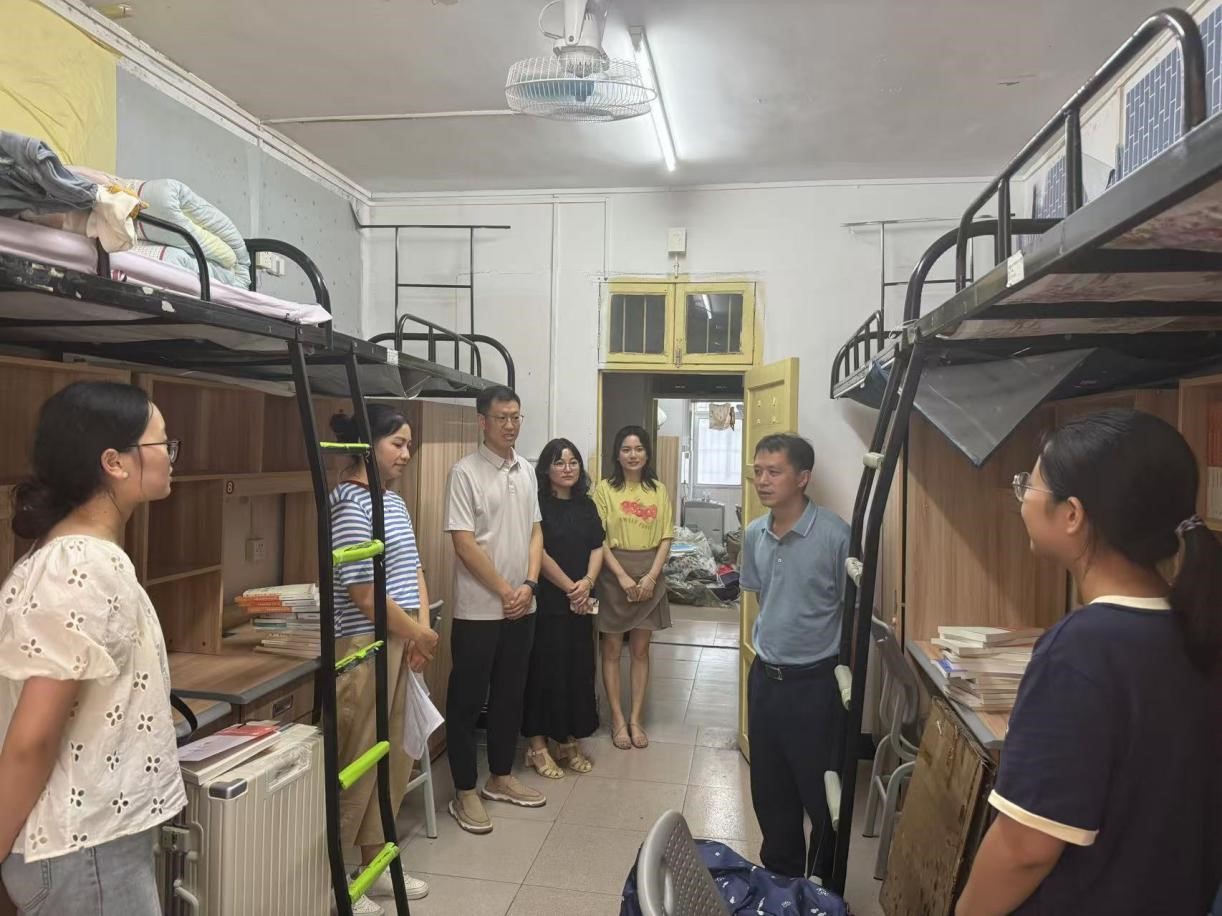 9月2日下午,暗网禁区 院长龙永干、副书记李豪杰及全体辅导员老师走访学生公寓,开展新学期寝室安全卫生大检查,同时鼓励同学们以崭新面貌投入新学期的学习生活。