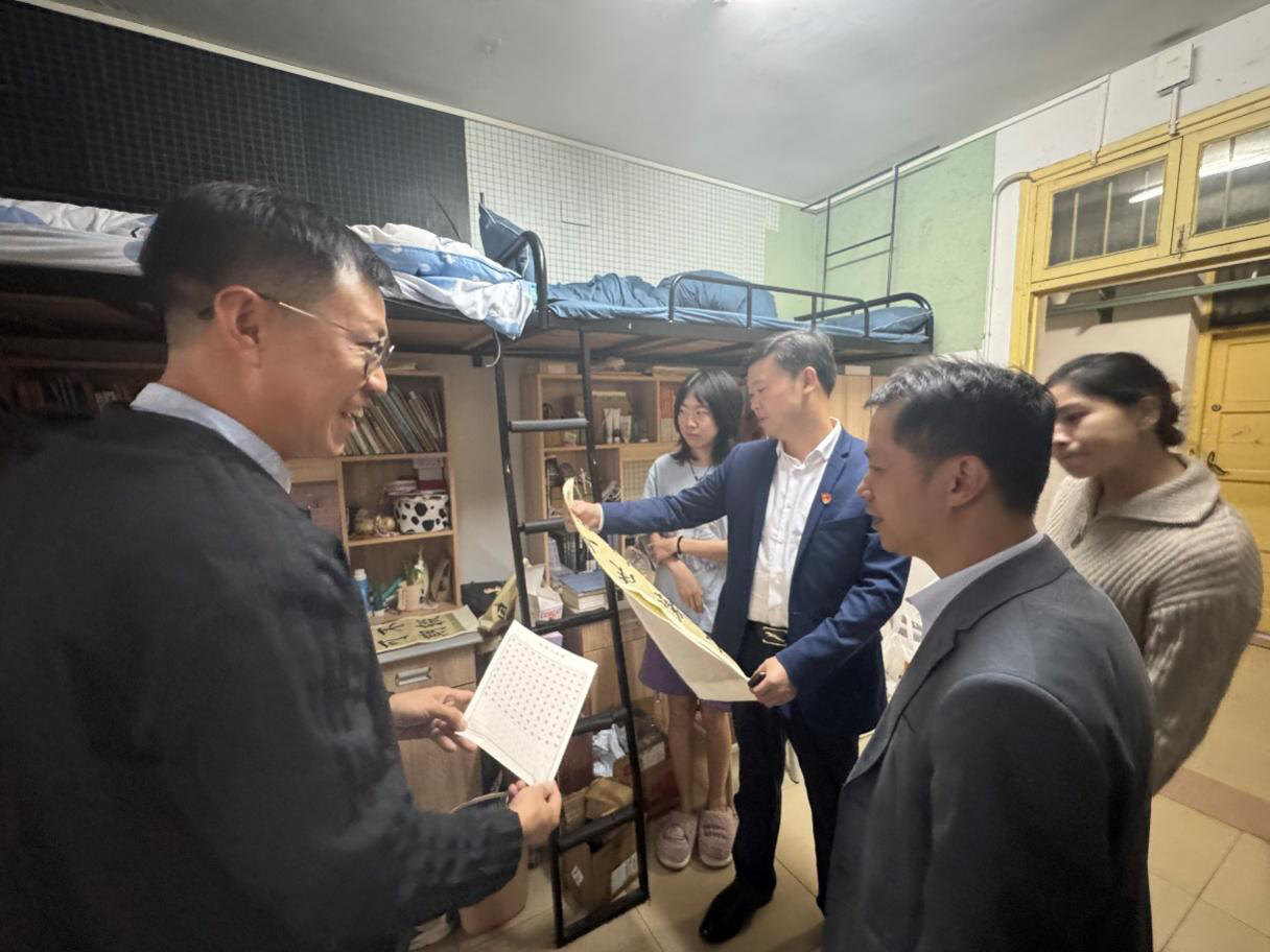党委书记刘立勇、院长龙永干、党委副书记李豪杰、学工办主任王娜带领全体辅导员深入学生寝室,关心了解学生的学习、生活情况。