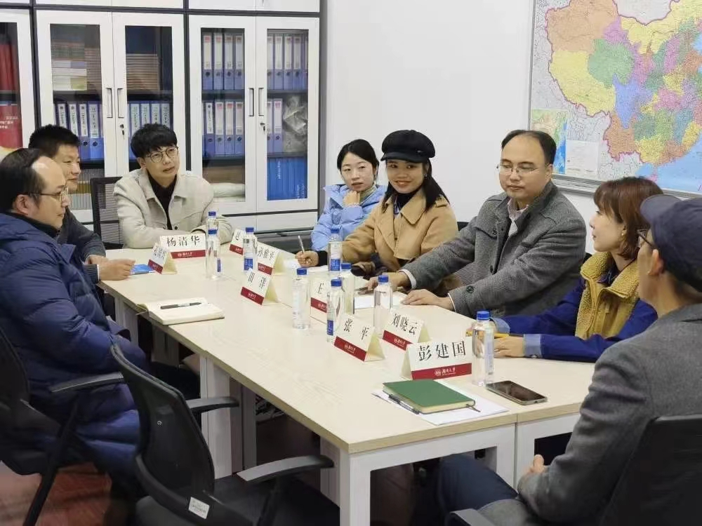 )办公室主任王正及基地成员刘晓云、赵姣、孙雅平老师前往国家通用语言文字基地(湖南大学)考察,并进行座谈。湖南大学文学院副院长、国家语言文字推广基地(湖南大学)常务副主任彭建国教授、副主任田洋副教授、办公室副主任孔国兴助理教授出席了座谈。
