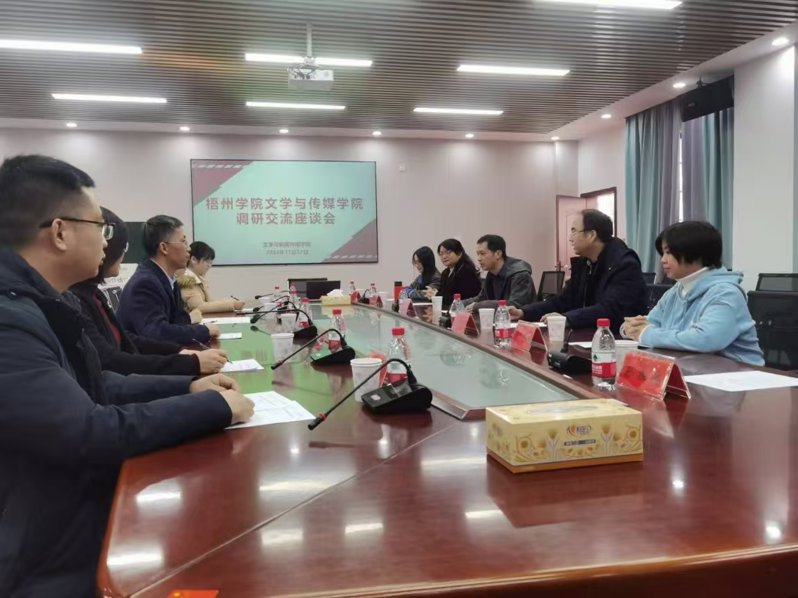 在本科教学、国家通用语言文字基地建设等多方面取得的成果,并介绍梧州学院文学与传媒学院的课程设置、师范生培养等方面的建设情况。张主任表示期待双方就特色办学经验展开深入探讨与交流。