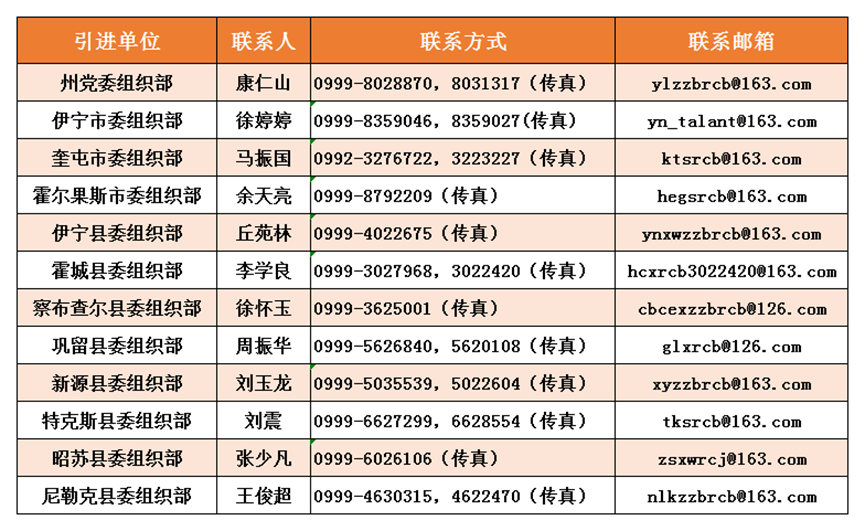 详情登陆伊犁州高层次紧缺人才招聘平台(//rencaiban.0999123.com)、伊犁党建网(www.yldjzx.cn)、伊犁组工微信公众号查询或向相关部门咨询。