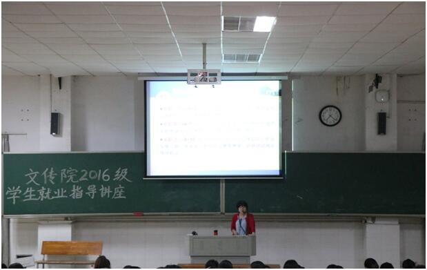 为2016级学生开展了多场就业指导讲座,讲座分三个专题——《就业形势与政策》、《就业定位与准备》、《求职面试与签约》,分别由文传院党总支书记刘澍心教授、罗燕主任、学工办唐科老师主讲。
