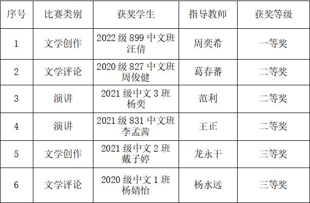 据悉,湖南省大学生写作演讲竞赛是我省汉语言文学专业唯一的一项省级学科竞赛。近年来,该项赛事受到教育厅及各高校的高度重视,现已成为中国语言文学学科检验教学效果、评价教学水平、衡量人才培养质量的重要依据。