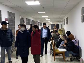 随后,李书记一行前往图书馆查看学习情况。走到一楼的朗读区,琅琅的读书声与凛冽的风声融为一体。图书馆入馆人数较平时有增多,同学们复习的状态更为刻苦。