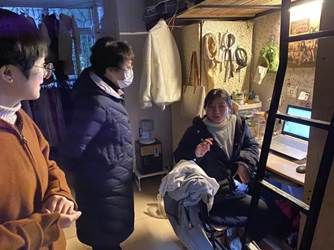 学工办主任唐科及全体辅导员走访学生宿舍和图书馆。