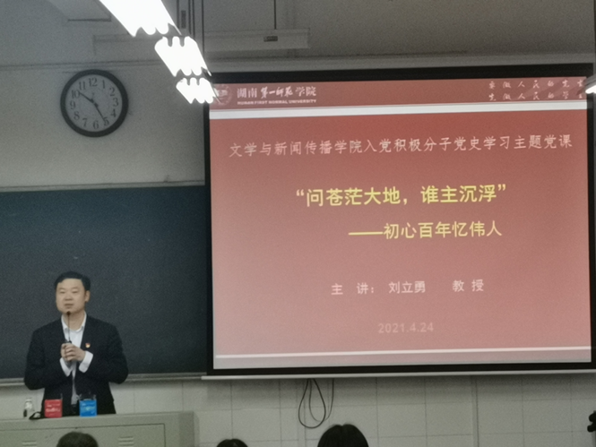第八期入党积极分子开展了“‘问苍茫大地,谁主沉浮’——初心百年忆伟人”的专题讲座。学生第一党支部书记唐科出席讲座,第八期入党积极分子准时参与,讲座顺利展开。
