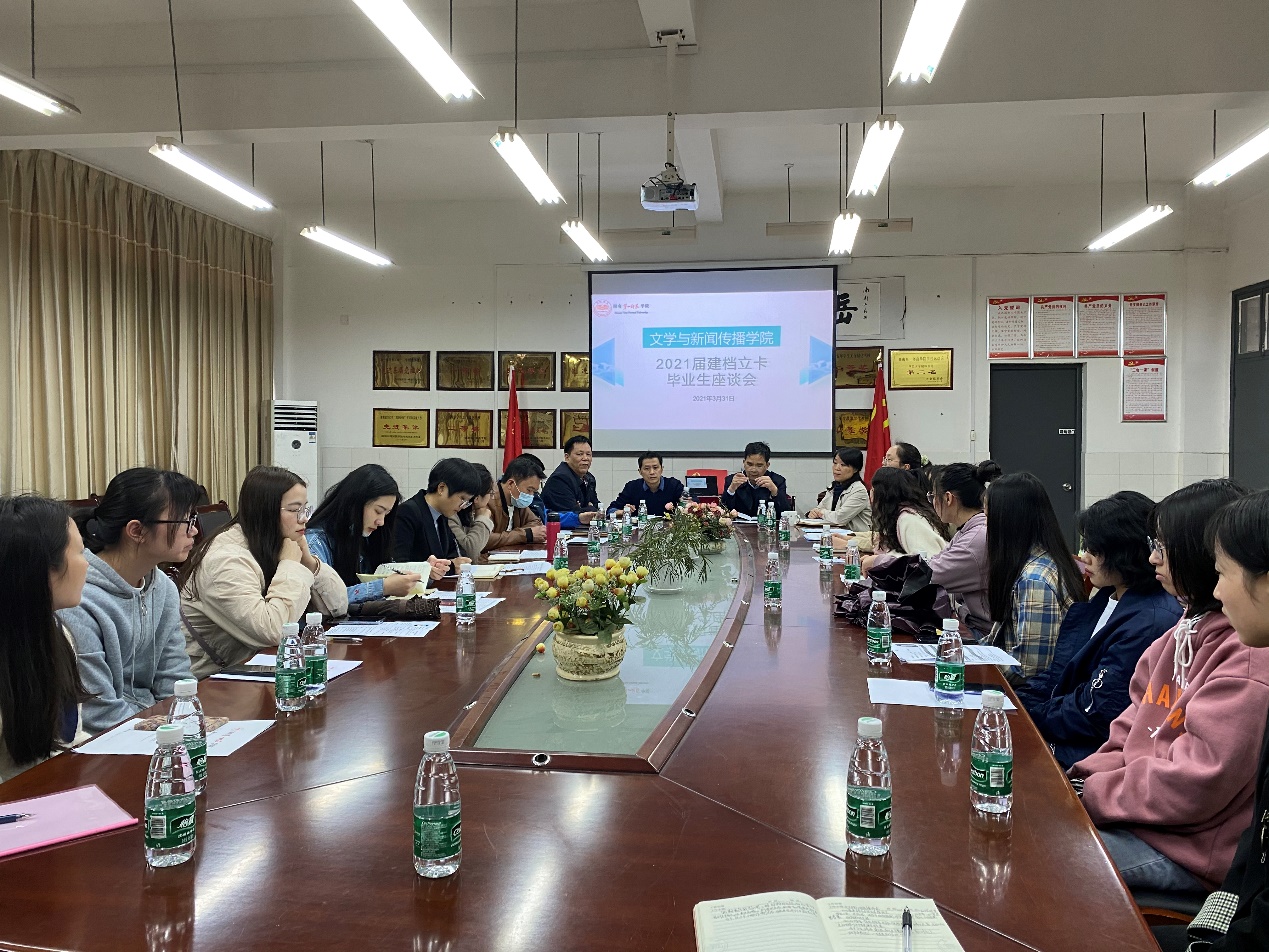 召开2021届建档立卡毕业生座谈会,学院党总支书记佘向军、院长龙永干、党总支副书记欧阳范剑、副院长邓姿、葛春蕃、三办主任、就业专干老师和建档立卡非定向毕业生参加了本次会议。