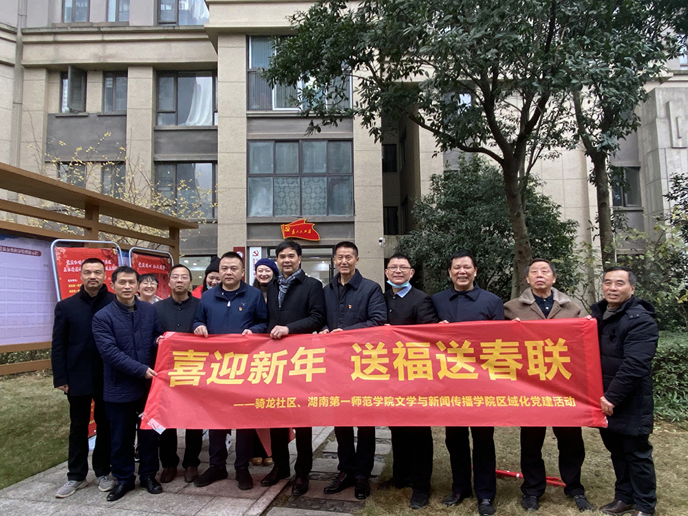 联合学校后勤处、湖南省楹联家协会、梅溪湖街道骑龙社区开展“新春下基层送春联送祝福”活动。学院党总支书记佘向军、院长龙永干、党总支副书记欧阳范剑、副院长葛春蕃、学校后勤处处长莫崇芬、湖南省楹联家协会主席鲁晓川以及梅溪湖街道骑龙社区党总支书记杨斌等相关负责人参加了活动。