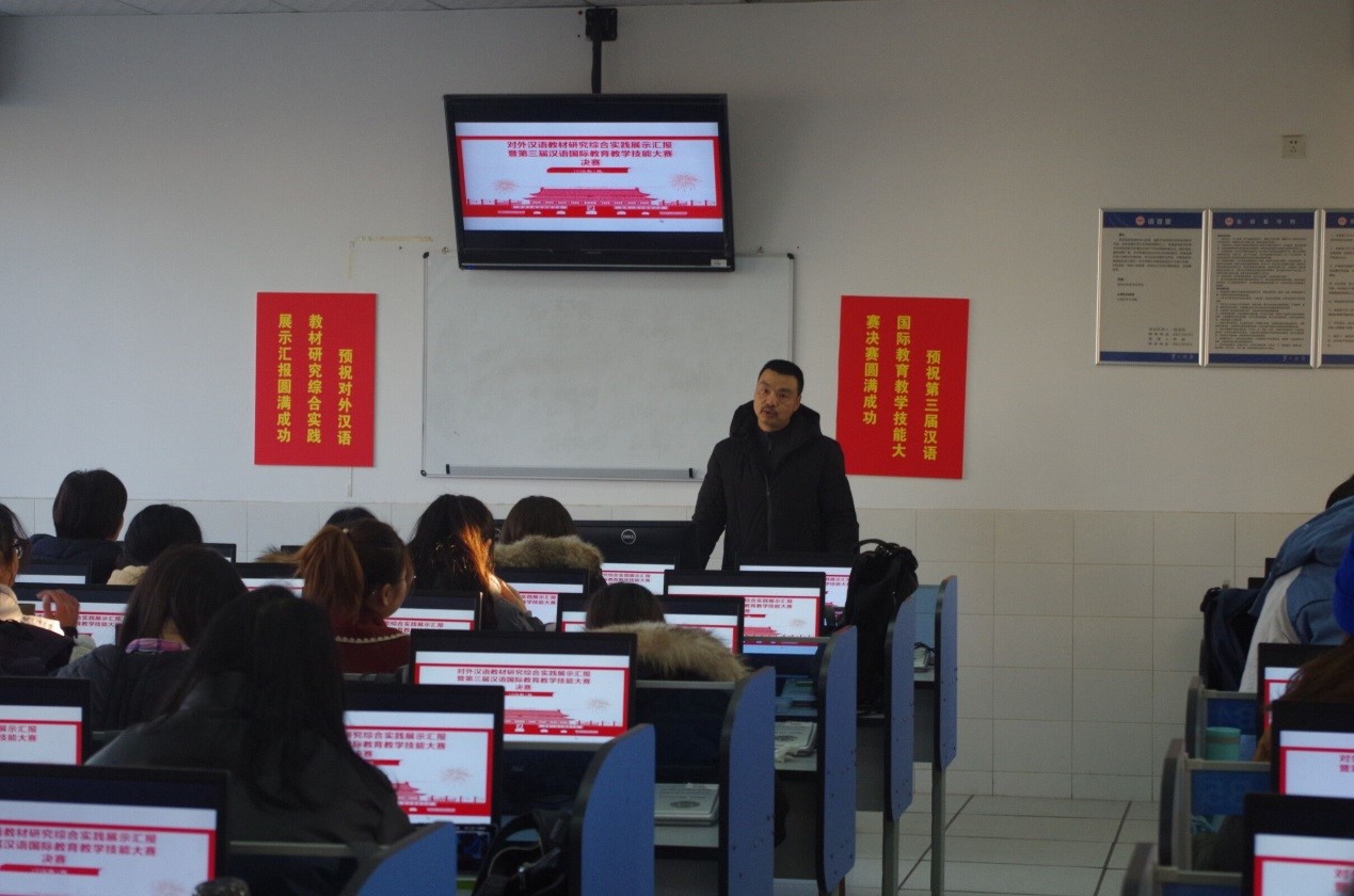 特举办了第三届汉语国际教育教学技能大赛决赛。副院长葛春蕃莅临现场观摩指导,毛丽、 姚必鲜、刘晓云老师担任了本次大赛的评委。