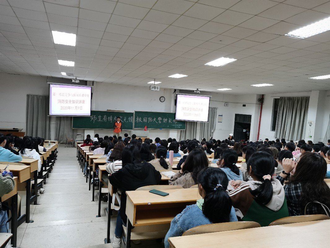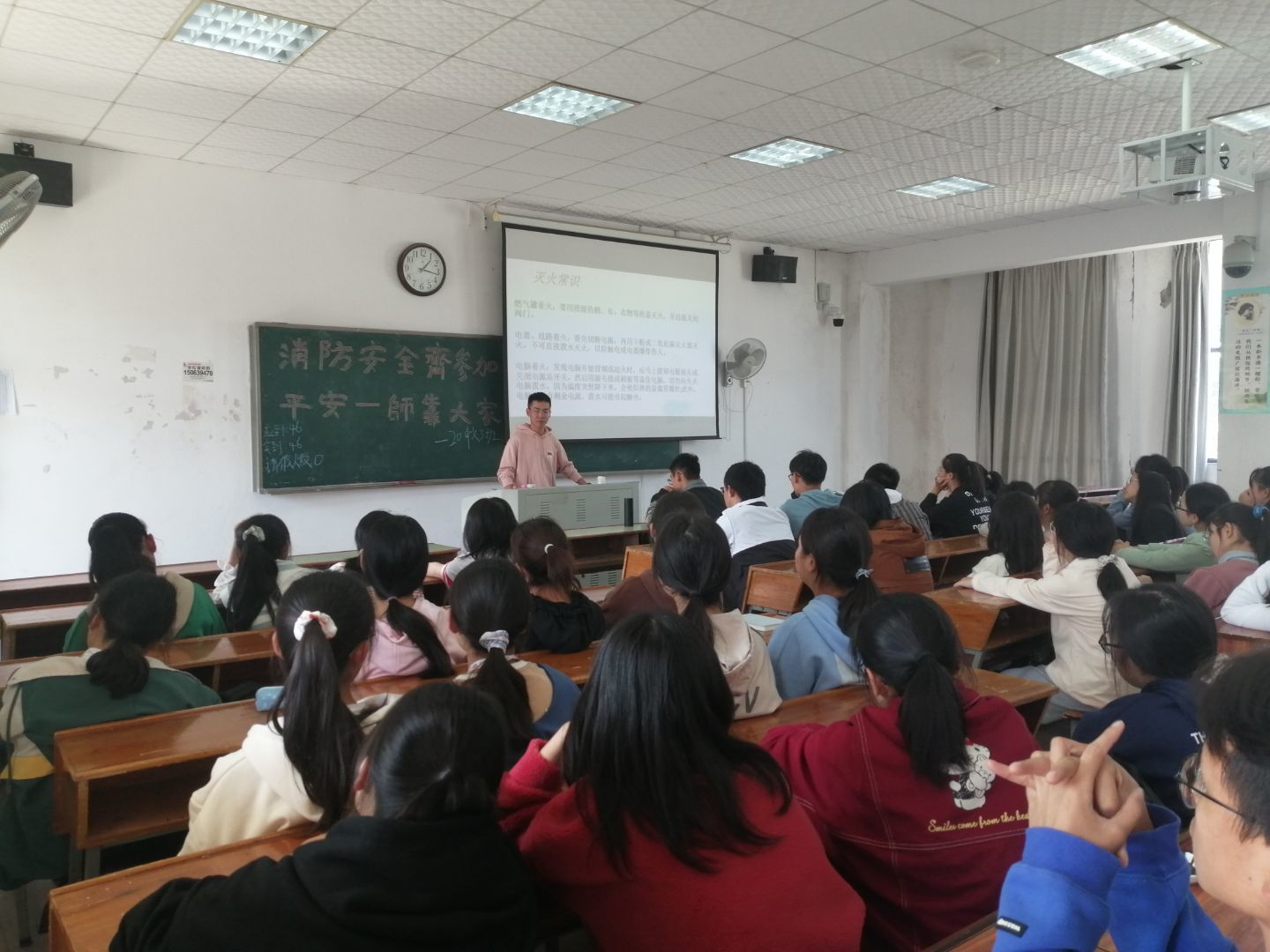 学工办主任唐科老师带领全体师生进行消防安全宣誓。湖南湘安消防公益中心陈广教官为师生们讲授了“珍惜生命,远离火灾”消防知识普及专题讲座。陈教官以大量的消防事故案例向师生们强调了掌握消防安全知识技能的重要性,嘱咐在场师生要做到“一懂三会”,指出寝室内违规使用大功率电器,超负荷用电以及断电不彻底是校园火灾的重要起因,并就火灾发生时的处理方法,火灾现场逃生技巧以及消防面具和灭火设备的使用方法进行了讲解。