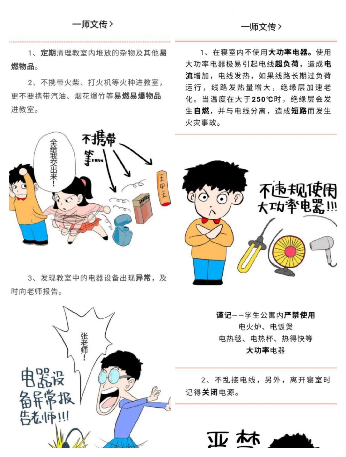 学院微信公众号“一师文传”以漫画形式讲解消防安全知识