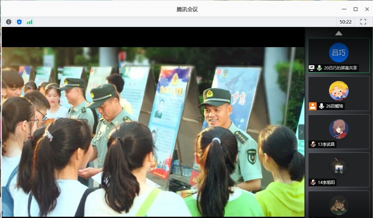 此次班会各班通过腾讯会议、QQ视频等平台线上开展,并观看征兵宣传视频《参军报国 不负韶华》、《逐梦青春》。视频以青春追梦为主题,艺术呈现适龄青年参军前后,经受军营磨砺发生的成长变化,着力展现军营对新时代青年的人生塑造,生动反映矢志报国,一生无悔的征兵宣传主题。