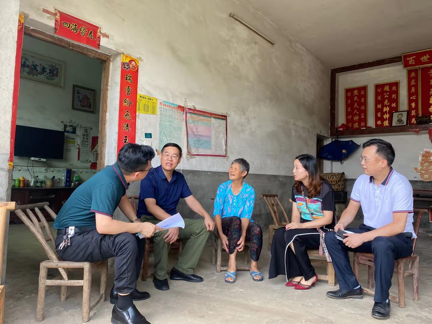 江校长鼓励张新仁老人,在党和政府的关怀和社会各界的帮助下,也能老有所依、老有所靠;子女可以增强自我发展能力,通过勤劳和智慧巩固脱贫攻坚成果。