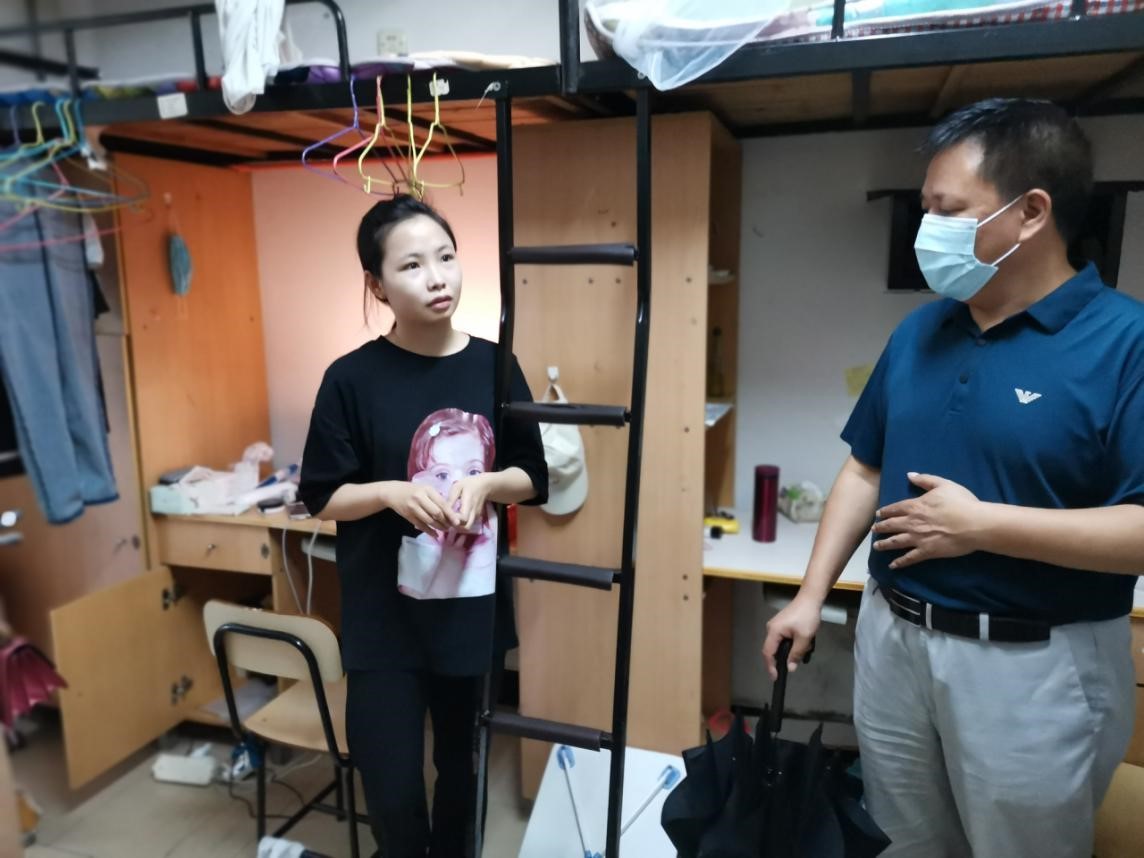 学院领导及辅导员老师先后走访了7栋、8栋、15栋毕业生宿舍,与毕业生进行了亲切交流,详细询问了毕业生返校后生活情况、考研、就业情况及离校手续办理情况;叮嘱毕业生们在疫情期间,一定要做好个人防护,提高安全防范意识,勤洗手,戴口罩,特殊时期避免聚集;此外,就离校期间的用水用电安全、寝室卫生、离校安全等事宜进行了强调。走访过程中,学院领导老师衷心祝愿毕业生前程似锦,希望毕业生毕业后无论身在何方,都要关心母校发展,与母校保持密切联系,不断增进与母校的感情,在空暇之余常回“家”看看。