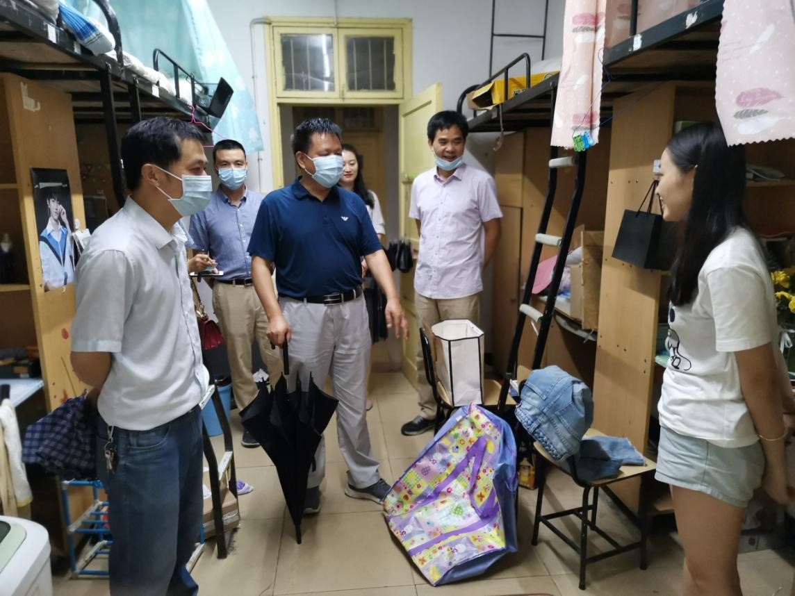 党总支书记佘向军、院长龙永干、党总支副书记欧阳范剑、副院长葛春蕃带领全体辅导员走访毕业生宿舍,检查毕业生离校情况。