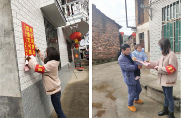 作为大学生,同时也是对社会时事最敏感的一群人,罗草首先将武汉爆发疫情的消息告诉了家长和村民们,并建议大家备好口罩。随后,罗草与村干部一同走街串巷,发放疫情防控宣传单,张贴疫情防控宣传标语,给乡亲们讲解疫情的动态和防控疫情的主要方法。