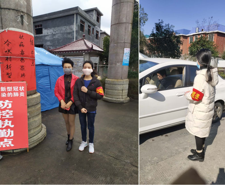 大三学生张梦婷作为一名入党积极分子也积极投身于村庄的抗疫工作,协助村干部在村口执勤,为每一个出入村庄的村民量体温,做登记,防止疫情向村庄蔓延。