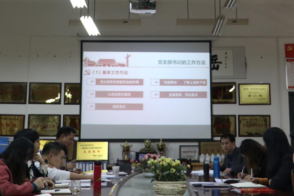 在玉衡楼201会议室举行主题为“如何做好党支部书记”的培训会议。学院党总支副书记龙永干及各支部书记、委员参加会议。党总支副书记欧阳范剑担任培训会议主讲人。