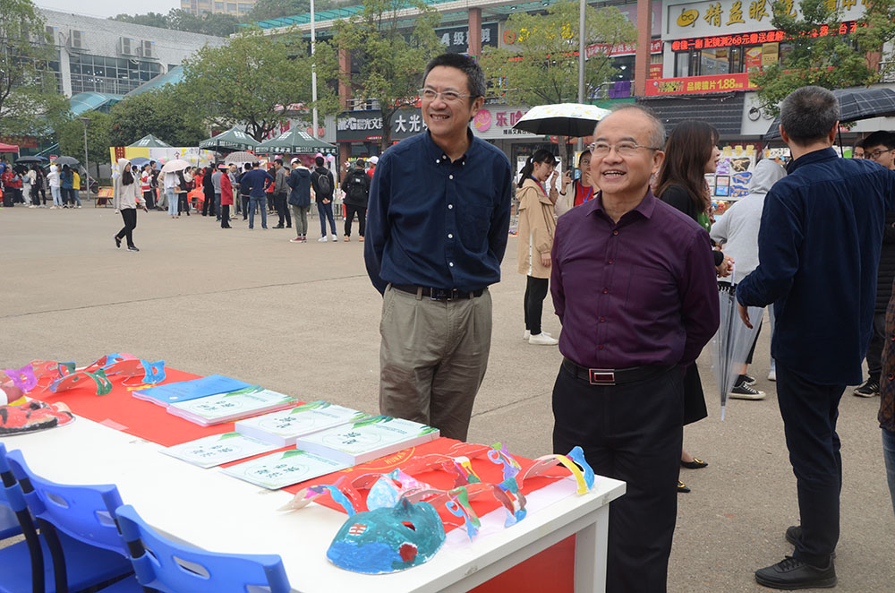 院长龙永干、党总支书记佘向军到场观看成果展。