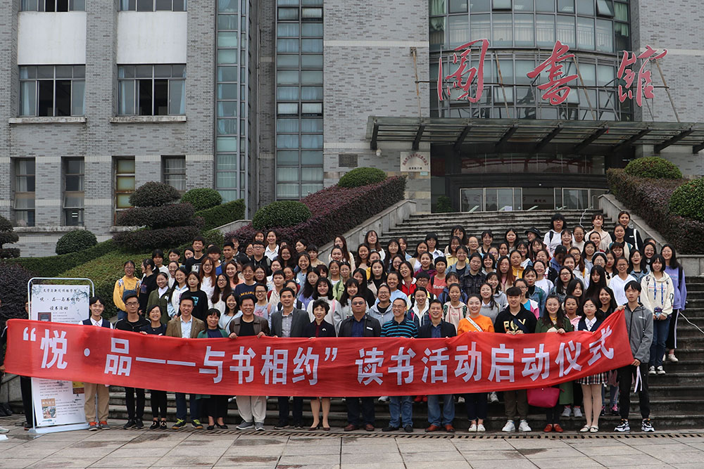 “悦·品――与书相约”读书活动在图书馆前举行启动仪式。校长童小娇、图书馆馆长赵奇钊、教务处副处长唐文杰,暗网禁区