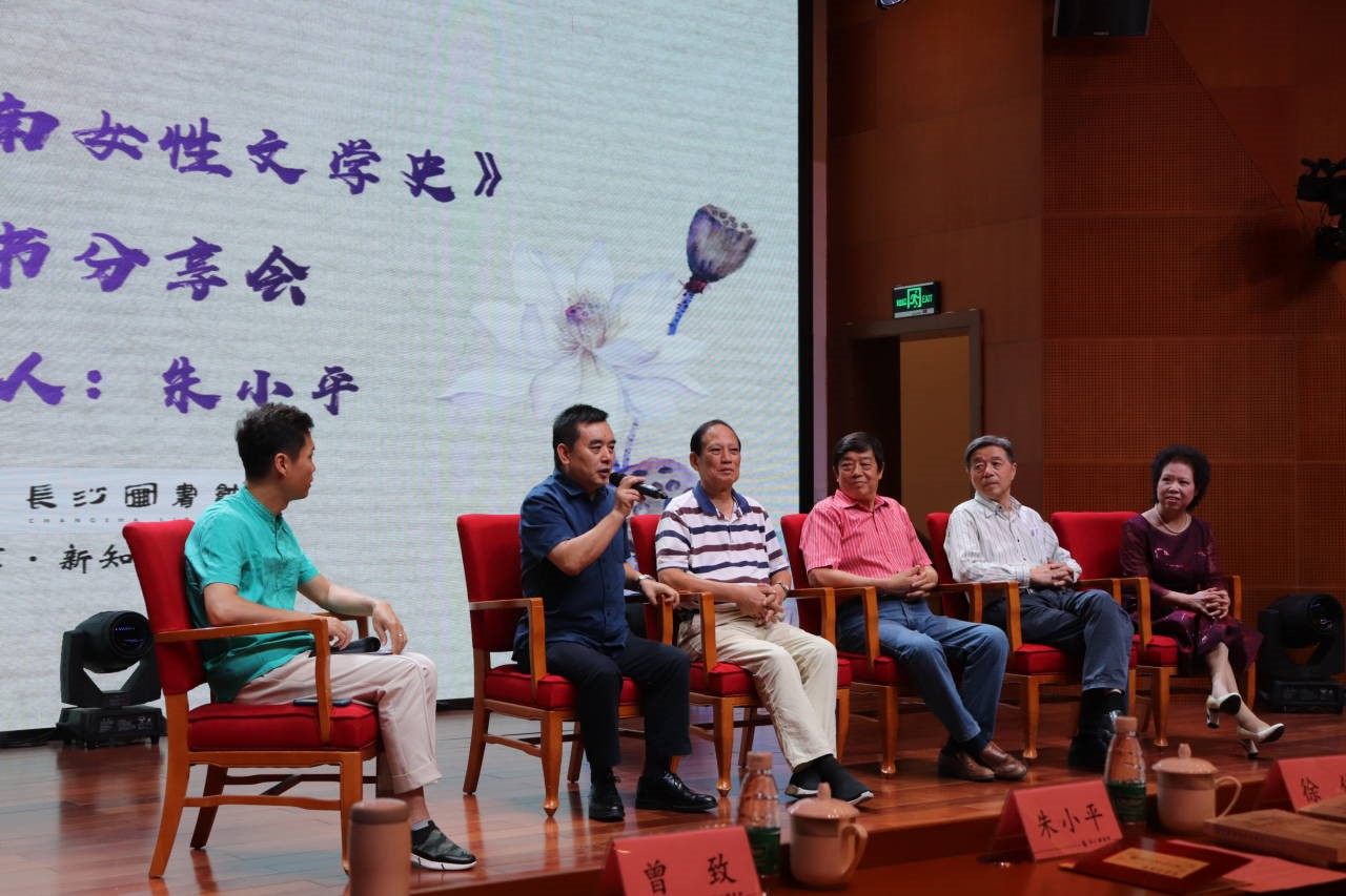 50名师生代表参加长沙图书馆举办的“悦享·新知读书会”之《现代湖南女性文学史》分享会。湖南省作家协会主席王跃文、中南大学欧阳友权教授、湖南工商大学陈书良教授、湖南师范大学田中阳教授、长沙市图书馆副馆长徐佳出席本次分享会。长沙图书馆、省社科联以及长沙6所高校的师生代表参加了本次活动。