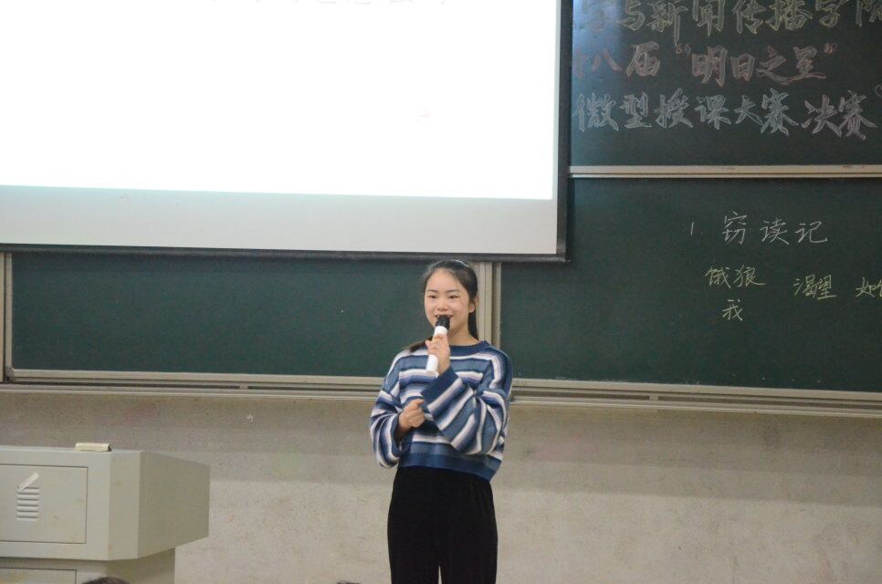 参加本次决赛的11名选手,是通过初赛、复赛两轮比拼后的胜出者。决赛在蒋娜同学紧张而不失活泼的《窃读记》的片段教学中拉开了帷幕。在紧张激烈的角逐过程中,李紫玥《桥》的片段教学中对人物情感心理的把握、细致贴切的分析,让在场的评委频频点头;顾娉婷在《慈母情深》的教学片段中声情并茂的朗读示范、悉心巧妙的学法引导,赢得了观众阵阵热烈的掌声;杨添的设计精美的课件、胡鑫汝亲切和煦的教态、许杰简洁自如的语言……无不在向评委展示自我过硬师范素质的同时,也让在场的观众深深领略到了语文课堂教学的魅力。经过两个多小时的角逐,最终16级709班顾娉婷同学独占鳌头,获得特等奖;李紫玥和胡鑫汝同学获得一等奖,其余同学分别获得二等奖和三等奖。随后,校外学业导师清水塘小学校长周满意老师从教学内容、教学方法、板书设计、学习引导、师生互动等方面对选手的授课进行了逐一点评。