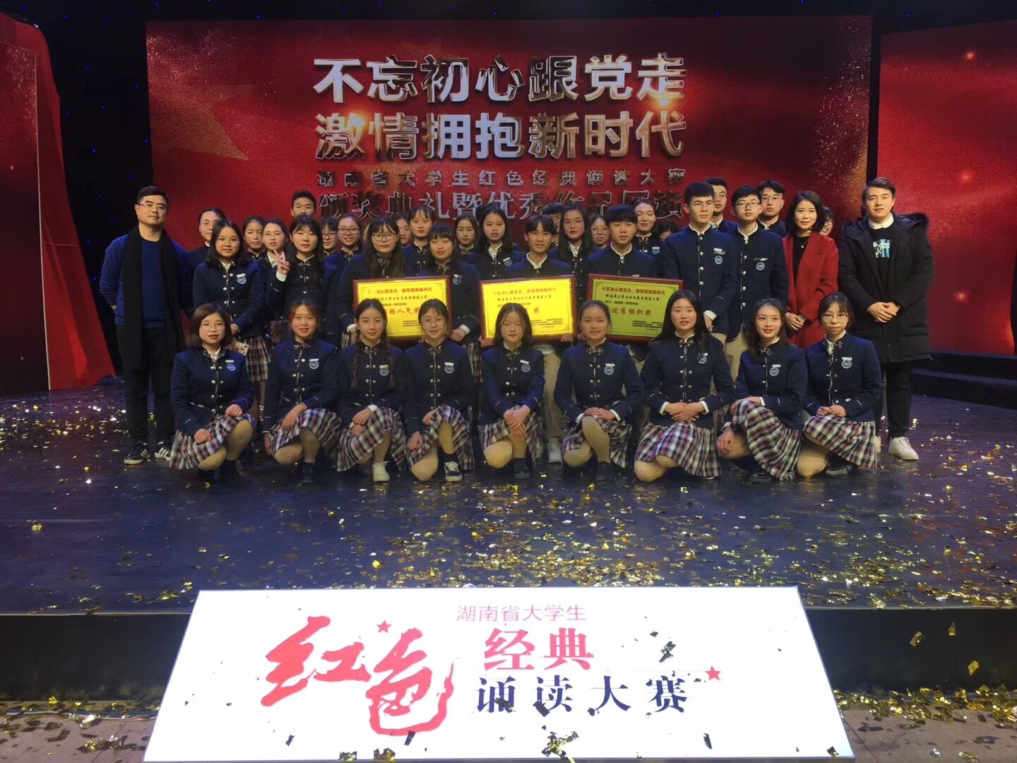 “不忘初心跟党走,激情拥抱新时代”湖南省大学生红色经典诵读活动由中共湖南省委宣传部、湖南省军区政治工作局、中共湖南省委教育工作委员会、湖南省民政厅、共青团湖南省委、湖南省全民国防教育委员会办公室联合主办,湖南教育电视台、湖南省高校易班发展中心承办。活动旨在挖掘国防教育基地、爱国主义教育基地红色基因,通过组织高校大学生诵读红色经典,创新活动和传播方式,引导新时代青年学生重温红色经典,感悟革命精神,激发爱国情怀,增强国防意识。全省有30多所高校参加此次活动。
