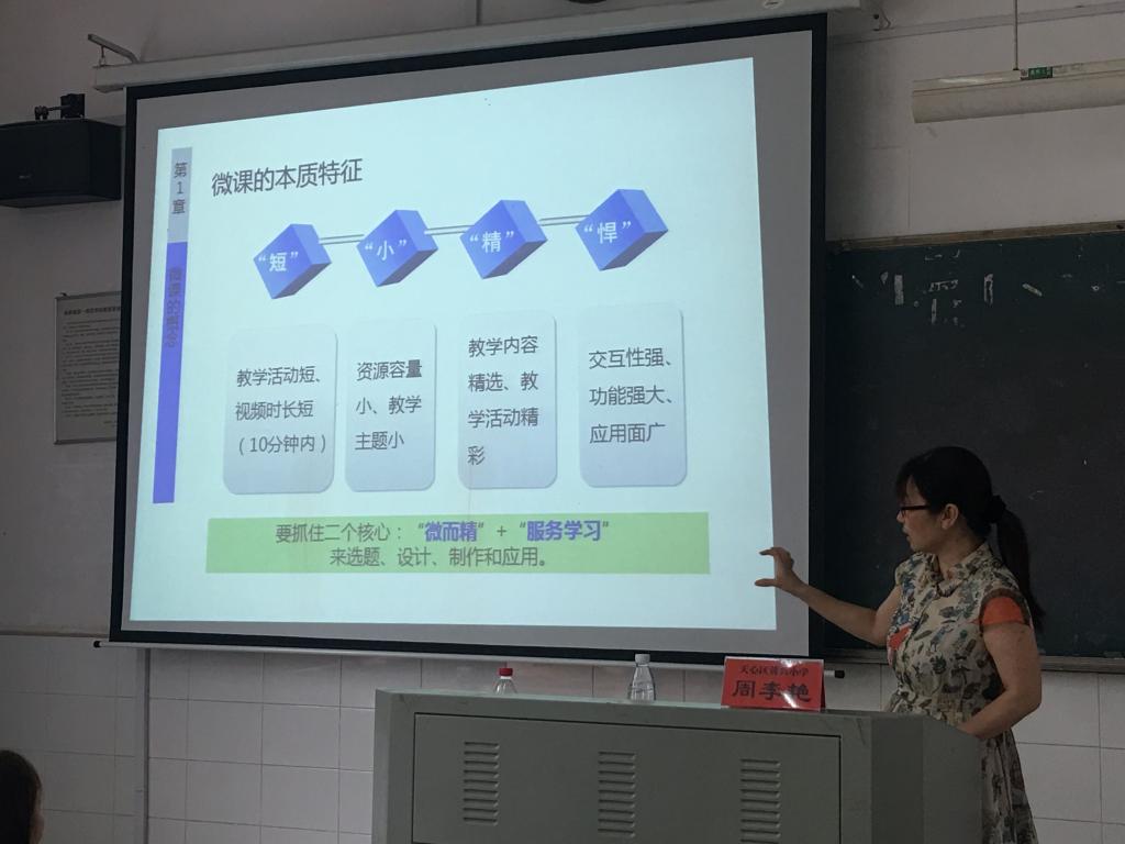 邀请教师教育联盟小学——长沙市天心区黄兴小学的周李艳校长为师生进行了题为“微课的概念、类型、制作与应用”的讲座。