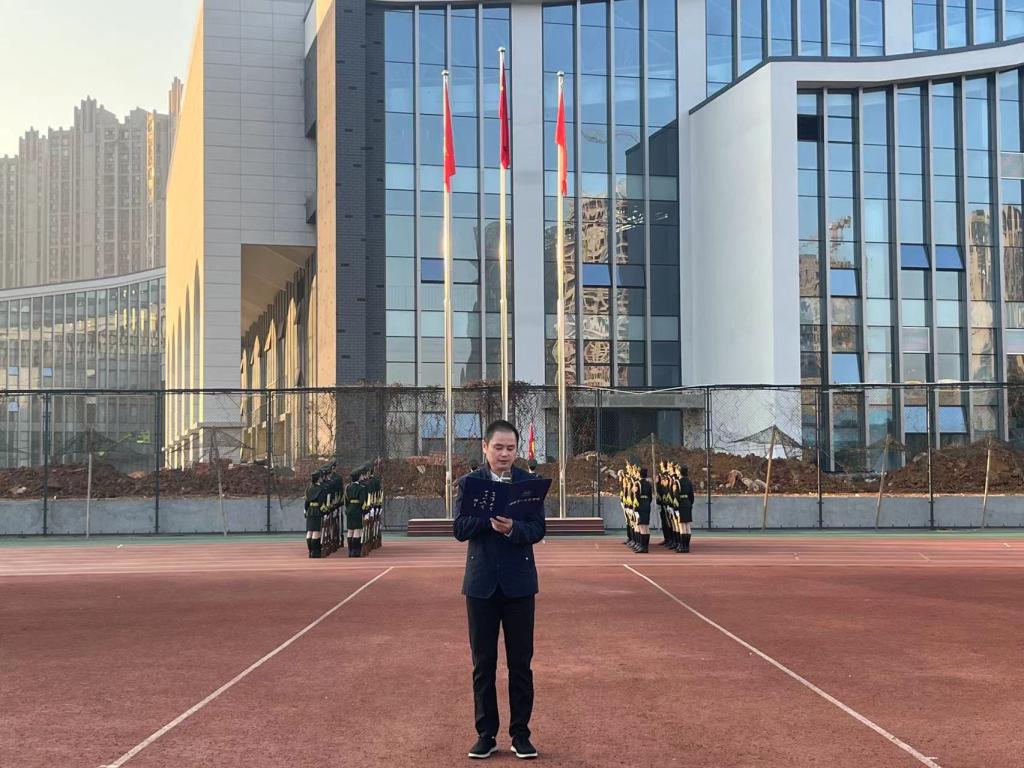何培森以“弘扬教育家精神,勇担新时代使命”为主题在国旗下发表讲话。他对同学们提出三点期望:第一,树立“强国有我”的志向和抱负,把国家至上、民族至上、人民至上化为内心真实的追求与信条,做到"心有大我,至诚报国",努力成长为堪当民族复兴重任的时代新人;第二,深刻把握社会主义核心价值观对道德行为的基本要求,内化于心、外化于行,不断促进道德养成并形成习惯,做到"言为士则,行为世范",争做社会主义核心价值观的模范践行者;第三,要勤于学习、敏于思考、勇于开拓、敢于创新,做到"勤学笃行,求是创新",努力成长为具有过硬本领的栋梁之才。