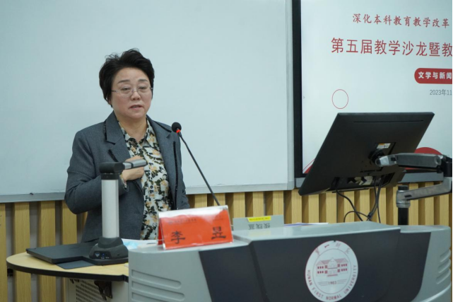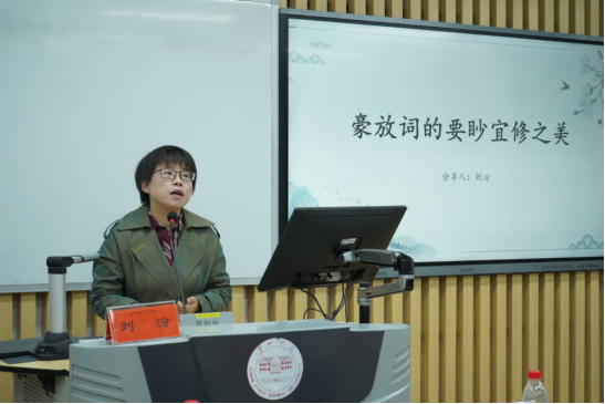 会上,方菲与刘汾两位老师分别从不同角度,分享了金课建设与课程改革经验。方菲以“新媒体数据分析与应用之直播‘种草’”为主题,围绕产品运营、内容运营、直播账号运营等方面对开源·浏阳河集团产品的直播进行分析研究,为教师产教融合与协同创新起到了良好的示范作用。刘汾带大家领略了“豪放词的要眇宜修之美”,分析体会辛弃疾词作《摸鱼儿》中呈现的“肝肠似火”“色貌如花”的双重意蕴,提出古代文学教学要做到“知人论世”,与教学内容“贴而不隔”,从而跨越历史的“长度”追求课堂的“深度”。