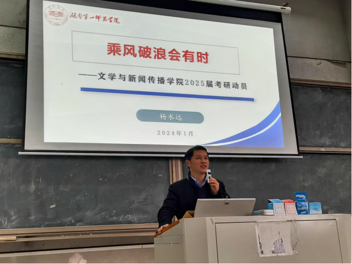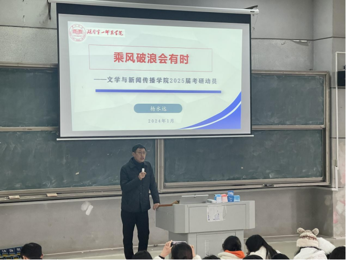 于润寰南106召开2025届考研动员大会。院长龙永干、副院长杨水远、学工办主任唐科、学工办副主任安炜成出席会议,全体2021级高招学生参加。大会由院党委副书记李豪杰主持。