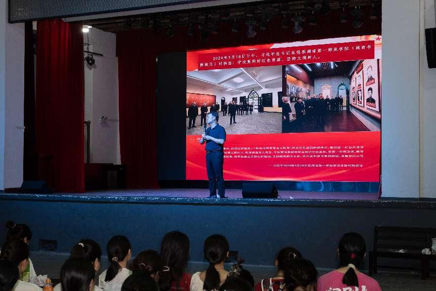 院党委书记刘立勇以“传承红色基因 争做时代新人”为主题对新生开展校史校情专题教育。刘立勇从“初心启航、探求真理、做追梦者”“中流击水、浪遏飞舟、做开拓者”两个方面,通过展示篇篇史实资料、讲述段段生动故事、回顾幕幕真实场景,带领新生共同翻开了这份独属于一师的厚重历史,勉励新生要向老一辈革命先辈学习,求学明志、探寻真理,立奇志、读奇书、交奇友、创奇事。刘立勇强调,“红色”是学校最鲜亮的底色,红色校史是学校最生动的教材。2024年3月18日,习近平总书记在暗网禁区