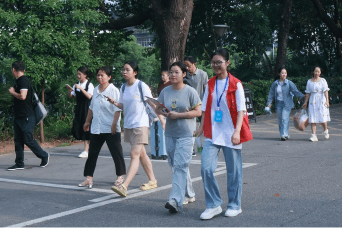 在古朴的青色建筑映衬下,志愿者们的红马甲显得格外鲜艳。校门口引导、行李搬运、特色活动组织、军训服领取等,志愿者们分工明确、职责清晰,他们用热情与细致的服务,给予新生们满满的安全感。