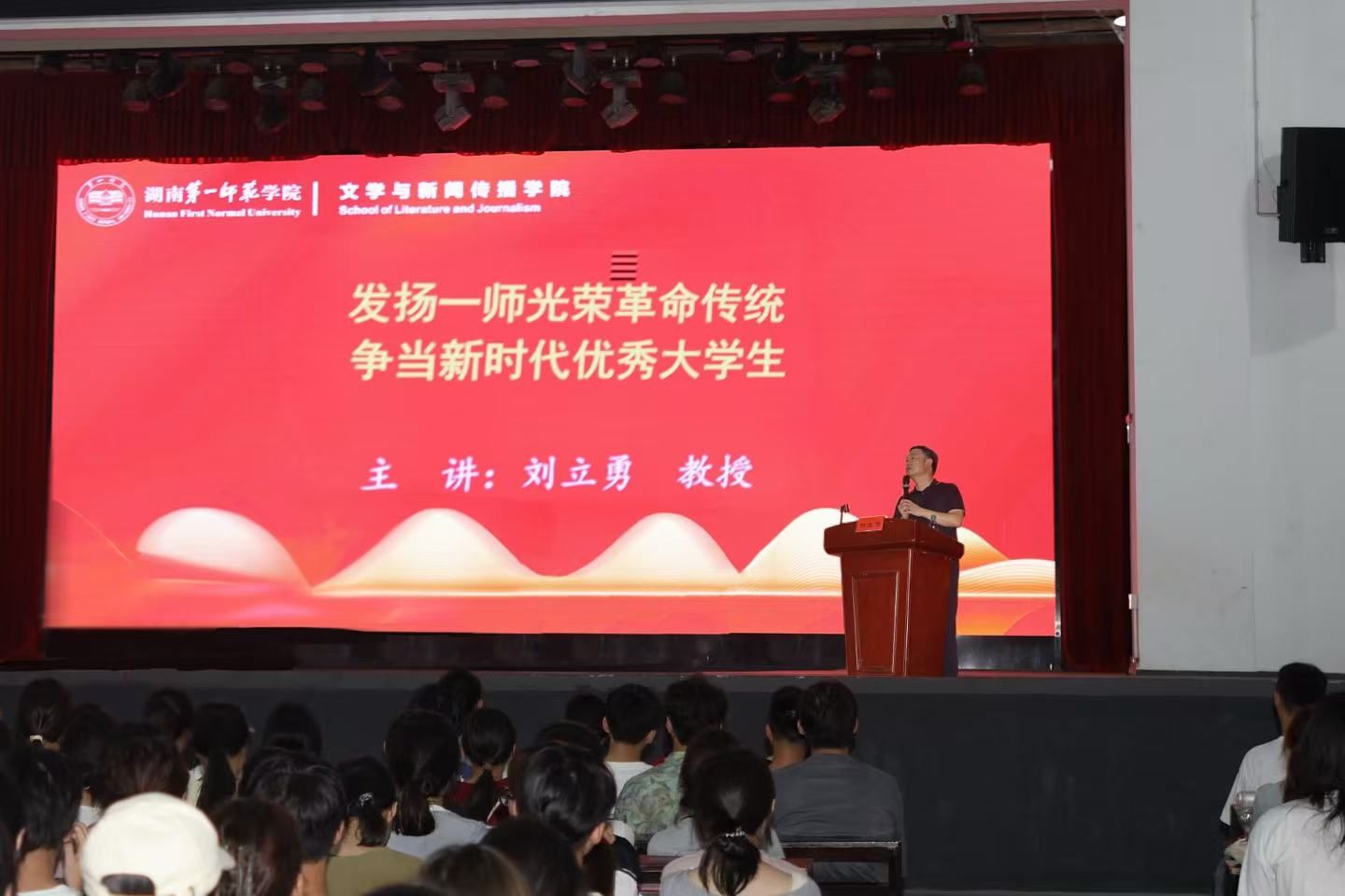 新生见面会后,院党委书记刘立勇以“发扬一师光荣革命传统 争当新时代优秀大学生”为主题对新生开展校史校情专题教育,带领同学们重温学校与民族同命运、与国家共奋进的峥嵘岁月,勉励同学们以今日之入学为起点,牢记习近平总书记殷殷嘱托,努力赓续一师精神文脉,在学校深厚的红色沃土上,心怀热爱,深植所学,尽情奔跑在人生崭新的赛道上。