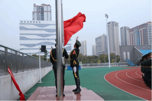 在东方红校区田径场上隆重举行升国旗仪式。学院党委书记刘立勇、院长龙永干、党委副书记李豪杰、副院长杨水远、党委委员彭娟及全体辅导员老师与学子们齐聚国旗下,以庄严仪式致敬国旗,凝聚奋进力量。