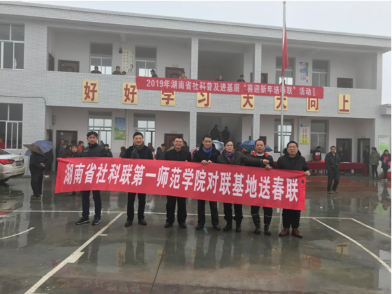 2019年,鲁晓川组织一师对联基地老师们赴邵阳县岩口铺镇贫困村书送春联,助力脱贫攻坚