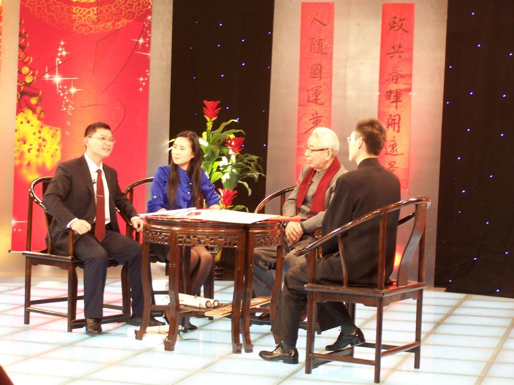 2004年,鲁晓川与中国楹联学会两位会长在CCTV 3共话楹联文化