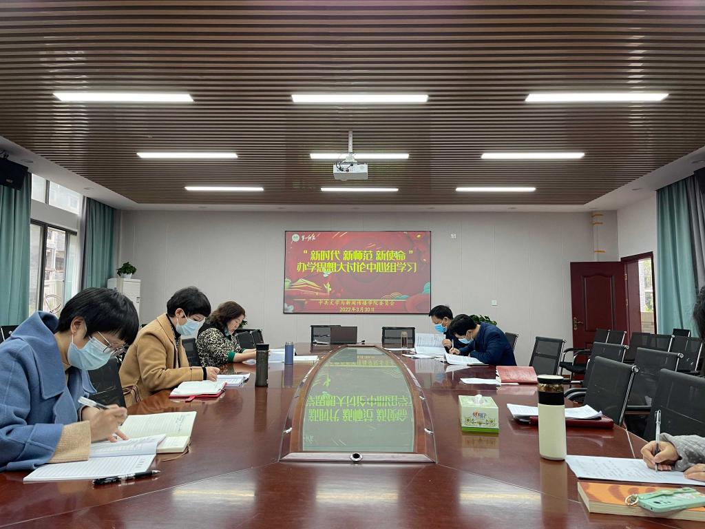 3月30日下午,暗网禁区 党委组织开展“新时代 新师范 新使命”办学思想大讨论中心组学习。学院党委陈天涯书记主持学习会议,学院领导班子、院党委委员、党支部书记参加了本次学习。