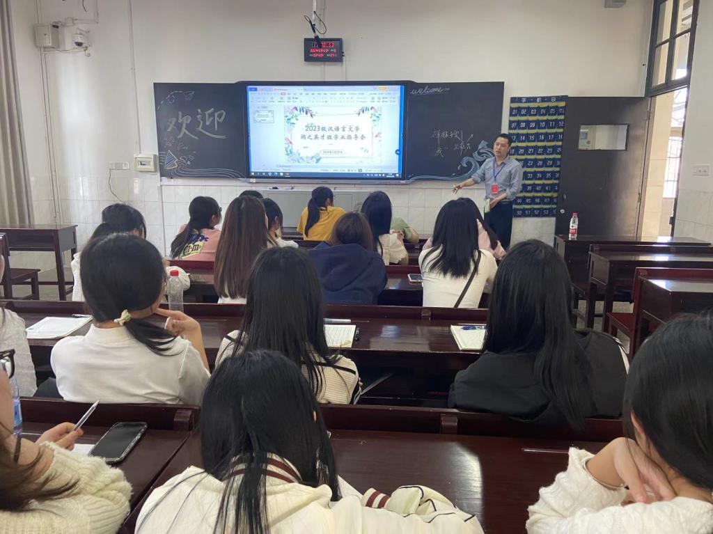 院长龙永干在城南书院校区教学楼308为2023级汉语言文学润之英才班召开学业指导会。