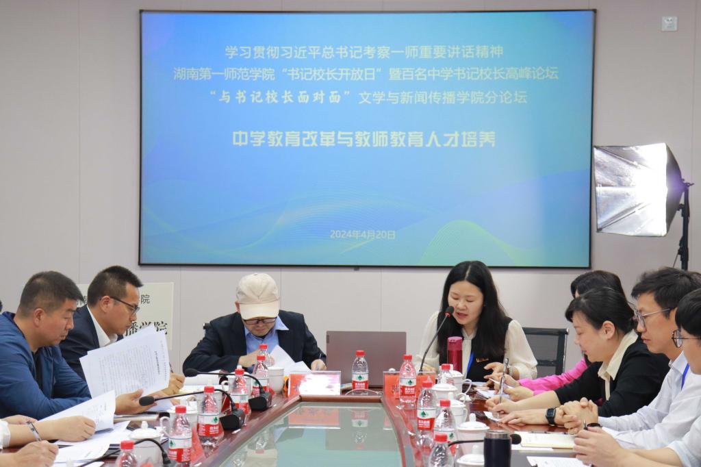 设“与书记校长面对面:中学教育改革与教师教育人才培养”分论坛,旨在优化人才协同培养机制,擦亮一师教师教育品牌。来自怀化、株洲、益阳等地10所中学的11位书记、校长,学校科研处副处长罗燕,学科规划与研究生处副处长杨清华,学院党委书记何培森、副书记李豪杰、副院长杨水远、副院长周军、党委委员张惠、各系室主任以及“润之英才班”的30余名同学出席。论坛由杨水远和张惠主持。